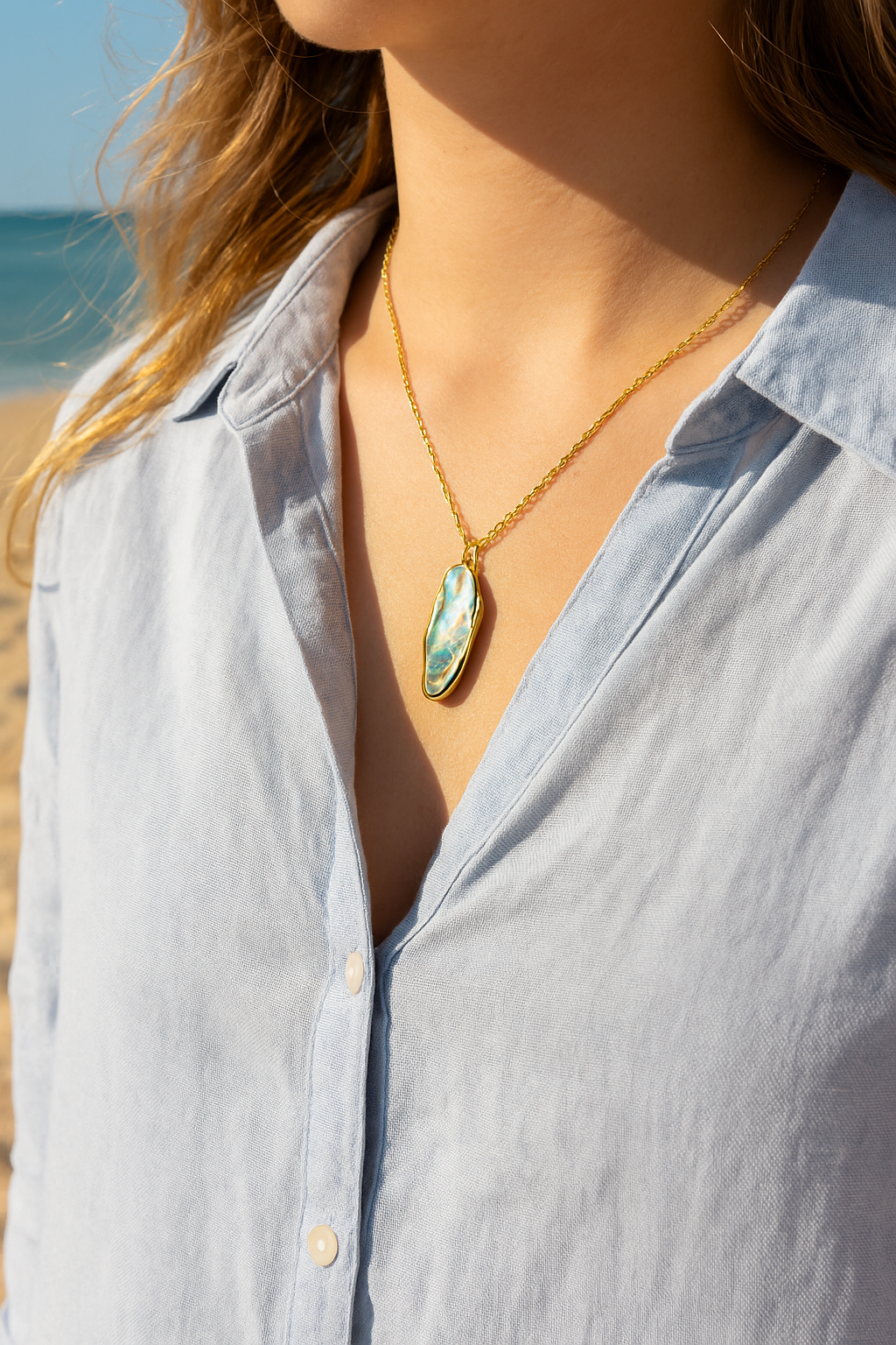 ZAYA x COSMOS 🇫🇷 Celeste – zlatna ogrlica s ovalnim privjeskom, zvjezdanim sjajem i bisernim detaljem