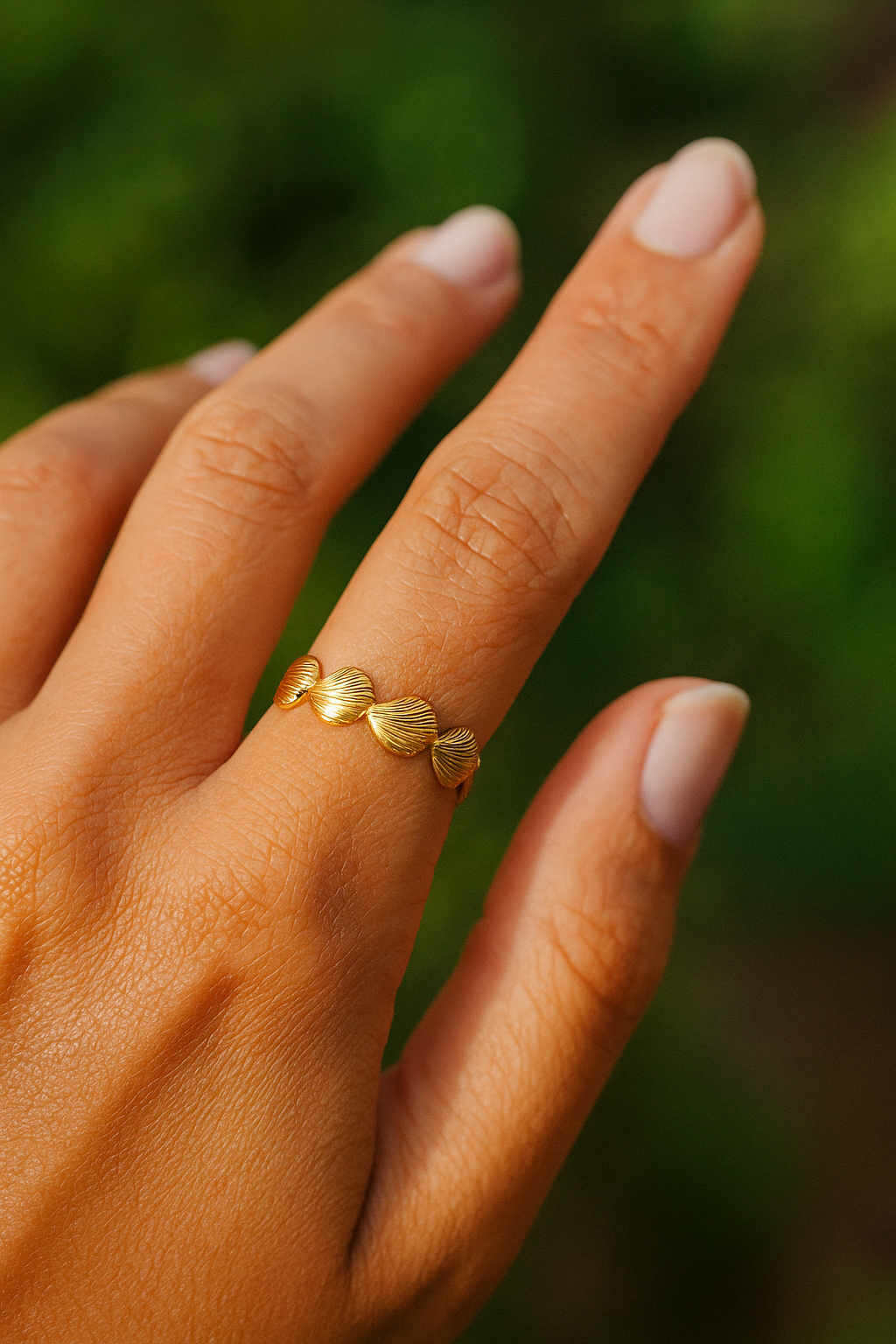 🐚 Bazou – Podesivi zlatni prsten s motivom školjki