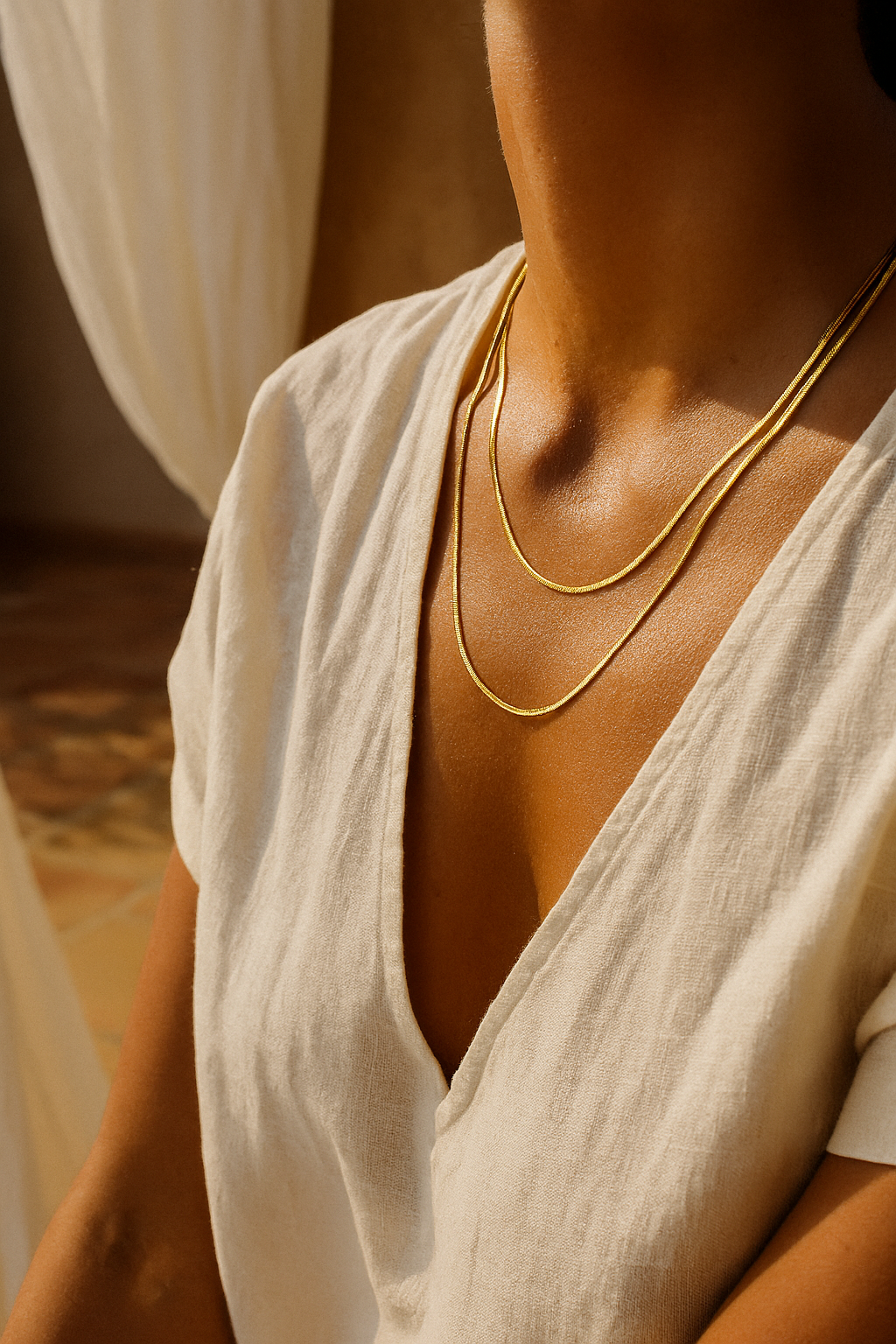 Double Layered je talijanski lančić koji izgleda kao da si ga naslagala s ukusom – ali bez muke. Dvostruki zlatni lanac u jednoj ogrlici daje iluziju slojevitosti, elegancije i stila bez puno razmišljanja.