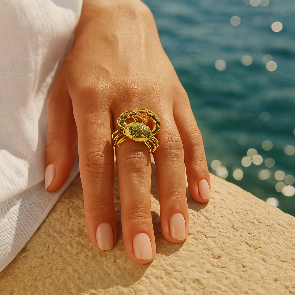Mr. Crab nije samo prsten – on je raspoloženje. Simpatičan, ali samouvjeren – ovaj mali zlatni rak donosi dozu zabave i osobnosti u tvoj ljetni styling. Savršen za sve Rakove u horoskopu, ali i za sve koje privlači more, sloboda i nakit koji ima karakter.