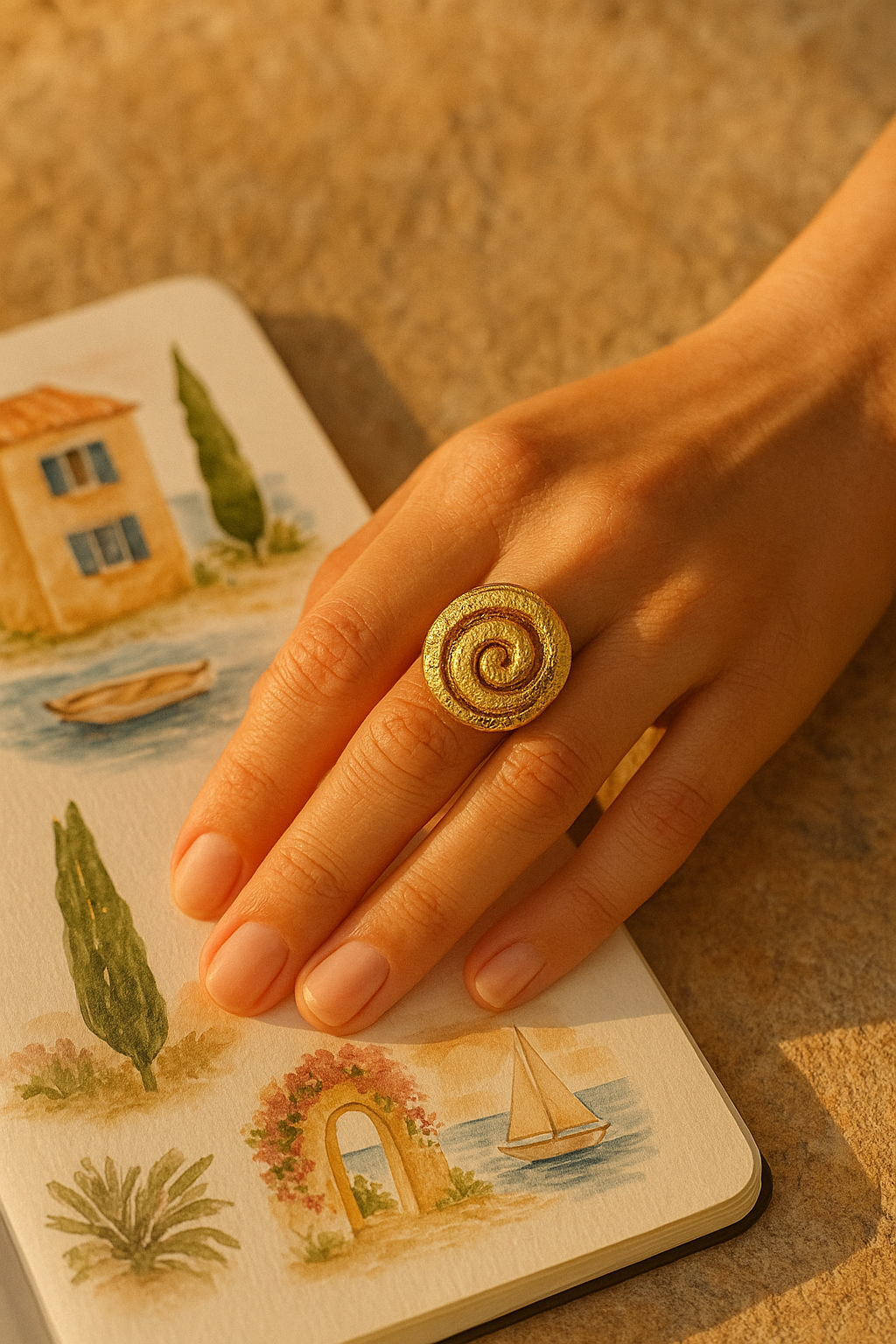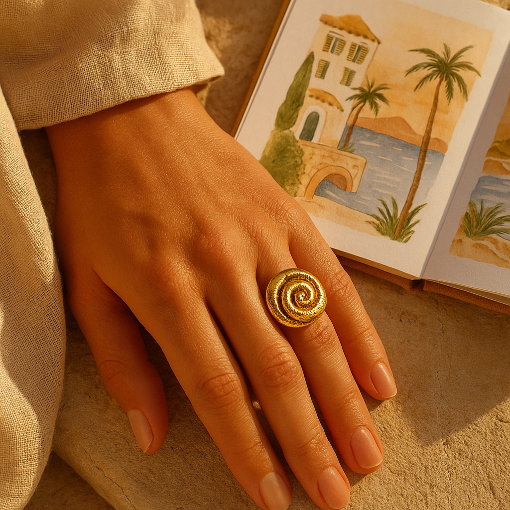 Ori je prsten koji se omotava oko tvog prsta poput zlatnog vala – elegantno, fluidno i s karakterom. Spiralni oblik simbolizira rast, energiju i životnu snagu, a zlatna završna obrada daje mu bezvremenski, luksuzni osjećaj.