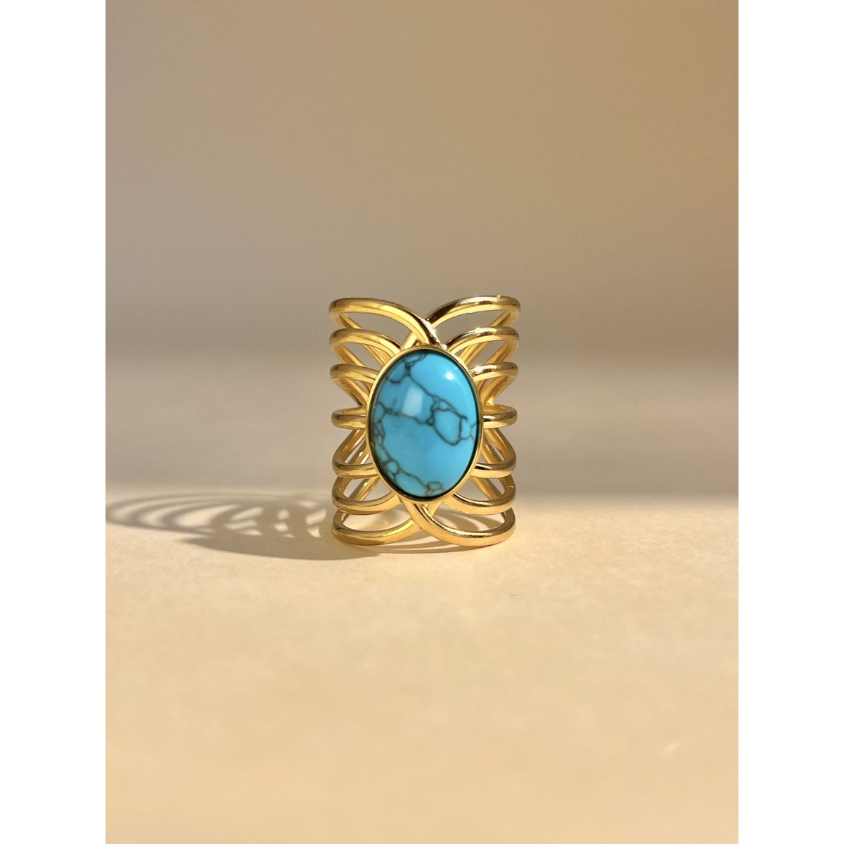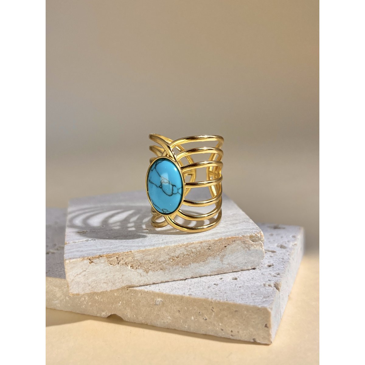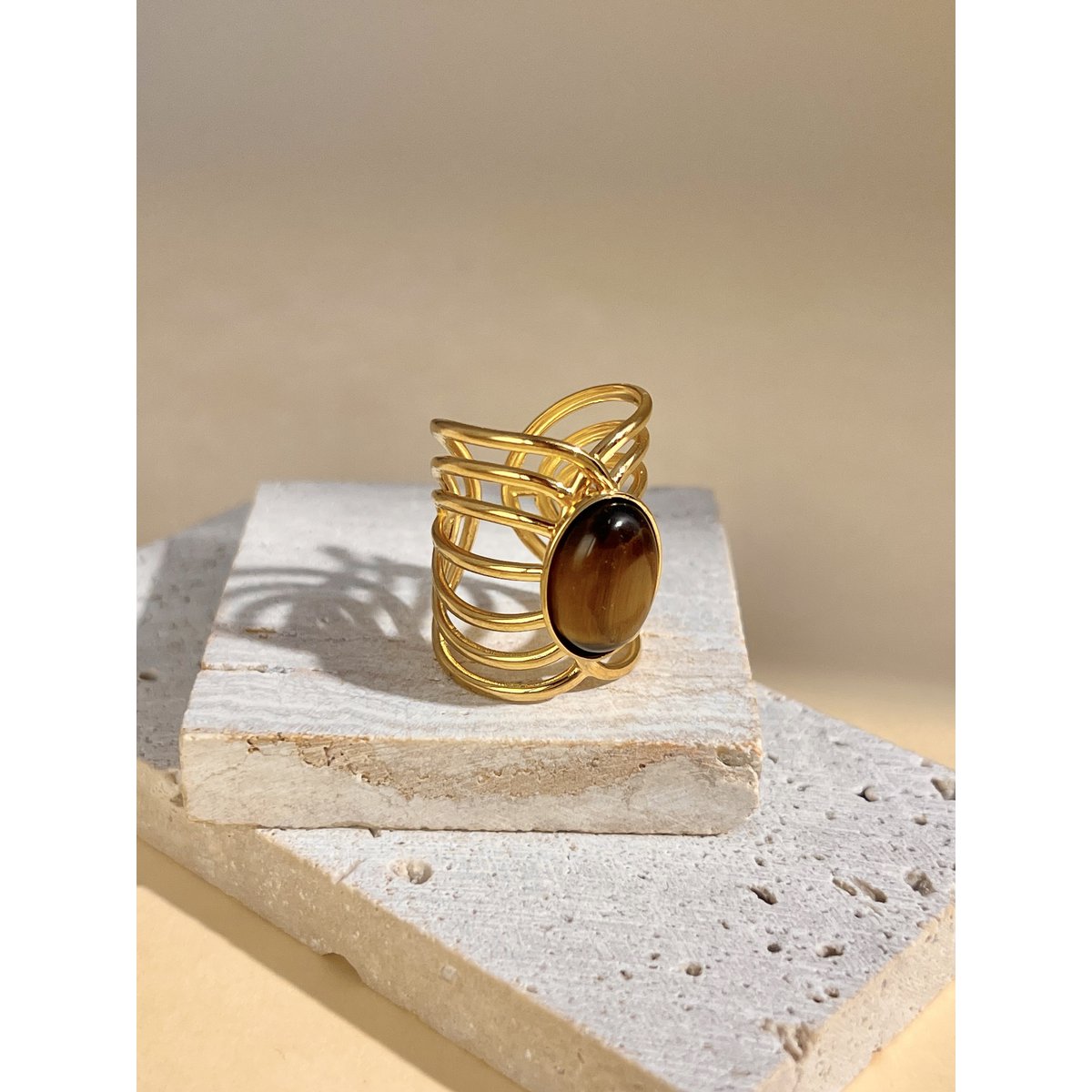 ZAYA x COSMOS 🇫🇷 Ajour – široki pozlaćeni prsten s prirodnim kamenom