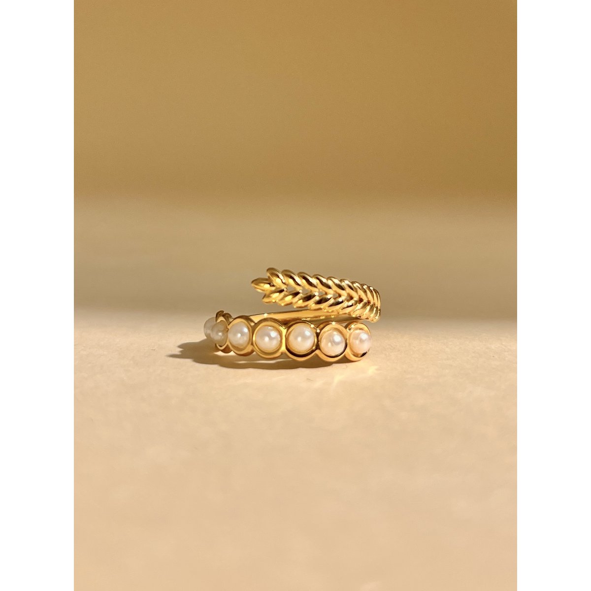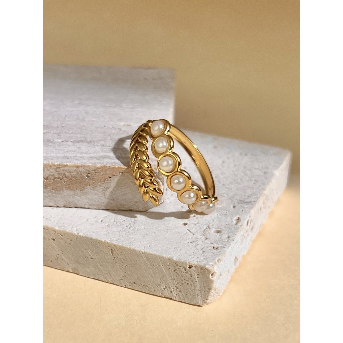 ZAYA x COSMOS 🇫🇷 Feuille – podesivi prsten s motivom lista i nježnim biserima