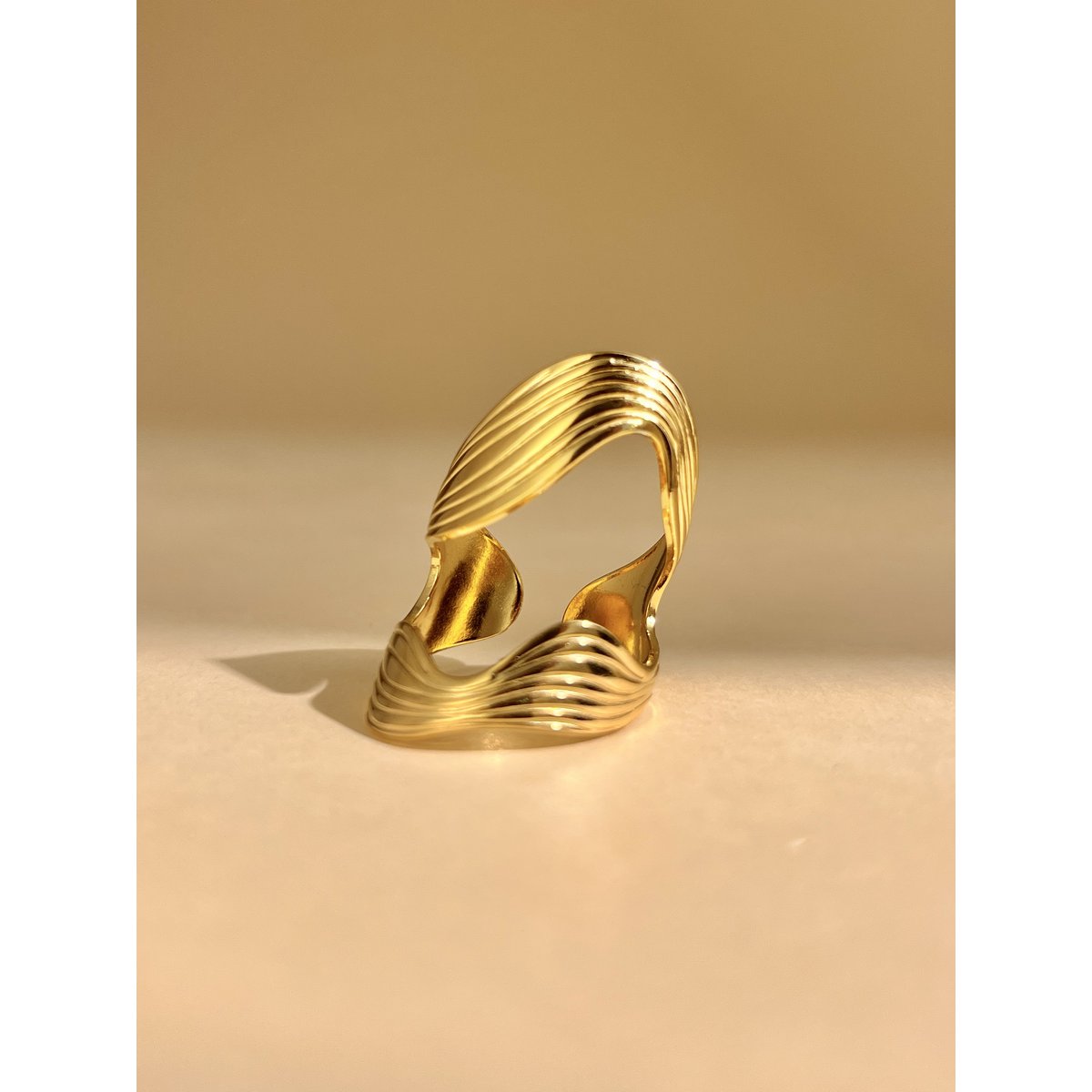 Vague je zlatni prsten koji prati pokret – inspiriran valovima, s teksturiranim, fluidnim oblikom koji hvata svjetlost u svakom pokretu ruke. Elegantno, moderno i uvijek u ritmu s tobom.