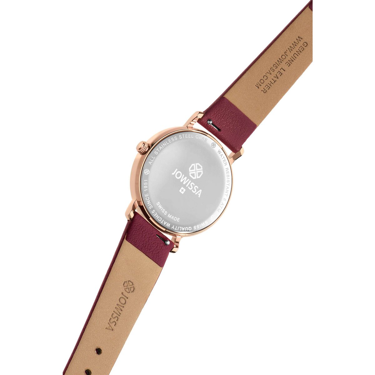 ZAYA x JOWISSA 🇨🇭 Alto – švicarski ženski sat s bordo brojčanikom i kožnim remenom