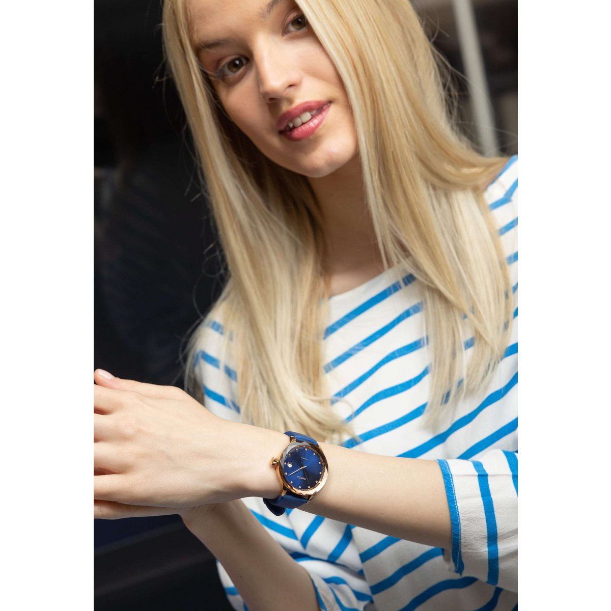 Kombinacija energije oceana i topline ružičastog zlata čini Tiro J6.247.M jednim od najefektnijih satova u ZAYA kolekciji. Intenzivna plava boja brojčanika, u kombinaciji s Ronda švicarskim mehanizmom i prozračnom silikonskom narukvicom, čini ovaj model idealan za aktivne, moderne žene koje žele da njihov stil bude i udoban i upečatljiv.