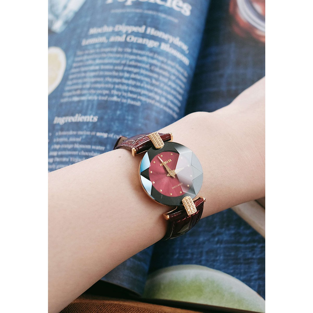 Tražiš sat koji izgleda kao da dolazi s crvenog tepiha? Model J5.013.M iz kolekcije Facet Strass je ručno sastavljen u Švicarskoj, s kućištem ukrašenim cirkonima, bordo kožnim remenom i staklom brušenim poput dijamanta. Kombinira eleganciju, švicarsku preciznost i moderni glamur – savršen za večeri, darove i svaki dan kad želiš zasjati.