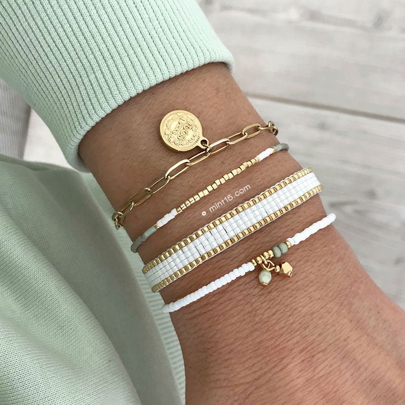 Vintage Mint je dio kolekcije delikatnih narukvica izrađenih od Miyuki perlica – poznatih po svojoj preciznosti i sjaju. Svaki uzorak je pažljivo ručno izrađen, što ovu narukvicu čini jedinstvenom i posebnom.