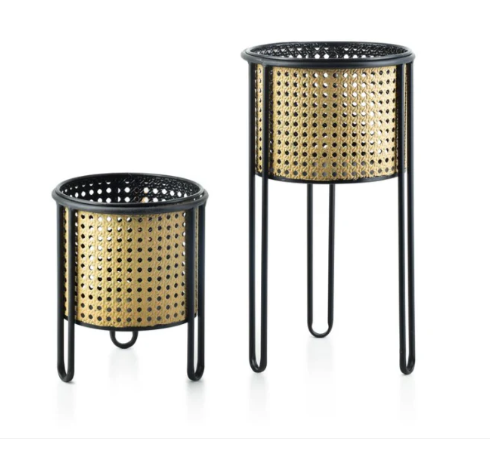 Crni metalni okvir u kombinaciji s ratan navlakama i profinjenim uzorkom bečke pletenice ratan čini ovaj duo savršenim spojem modernog i prirodnog.
