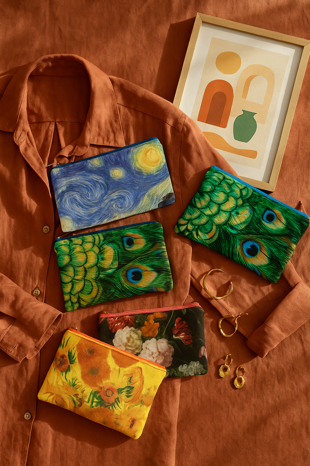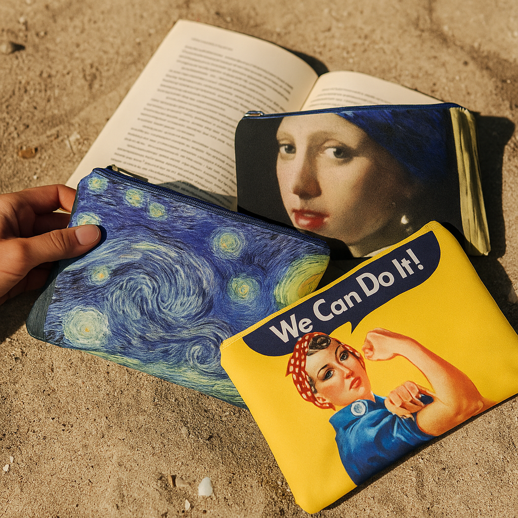 Torbice iz muzeja - motiv slike nije samo make-up torbica – može biti i pencil case, mini neseser ili elegantna travel pouch za svaki dan. Bez obzira koristiš li je za šminku, punjače ili sitnice za putovanje, unijet će dozu umjetničke profinjenosti u tvoju torbu.