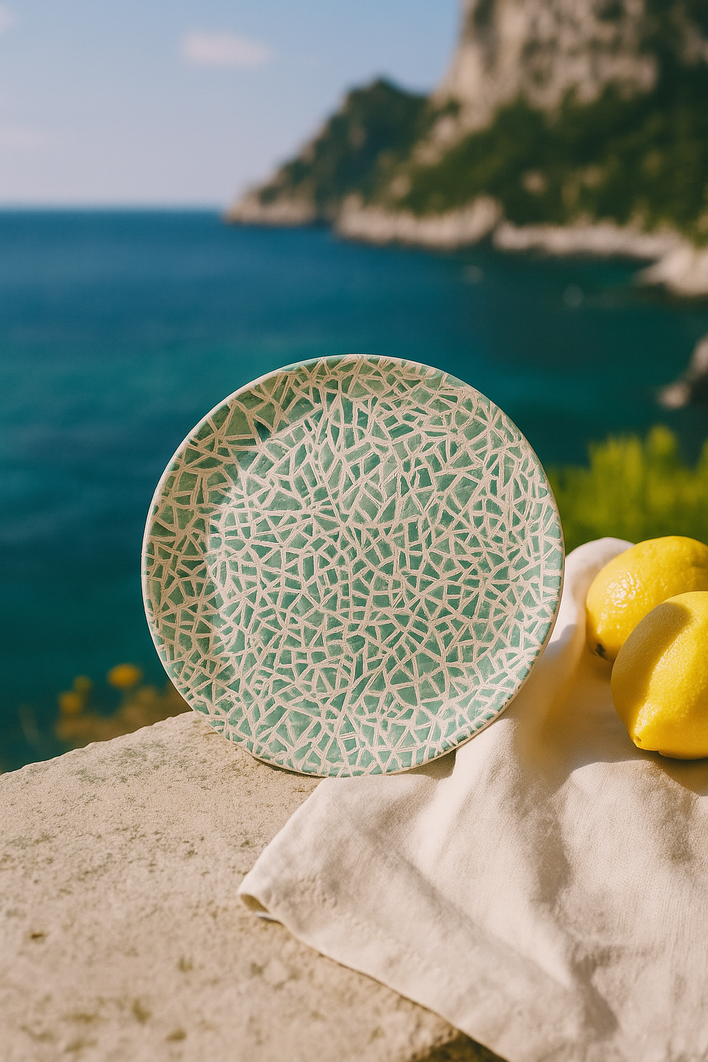 Tanjur Emerald Mosaic iz kolekcije Tognana Attitude inspiriran je mozaicima juga Italije, teksturom smaragda i ljetnim stolovima na terasama pod limunom.