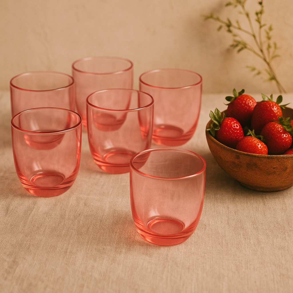 Set od 6 staklenih čaša u savršenoj nijansi roze budi osjećaj ljeta, nostalgije i indie estetike. Svaka od njih ima 200 ml zapremine – taman za domaću limunadu, roze vino, iced coffee ili onaj prvi gutljaj ujutro dok još svi spavaju.
