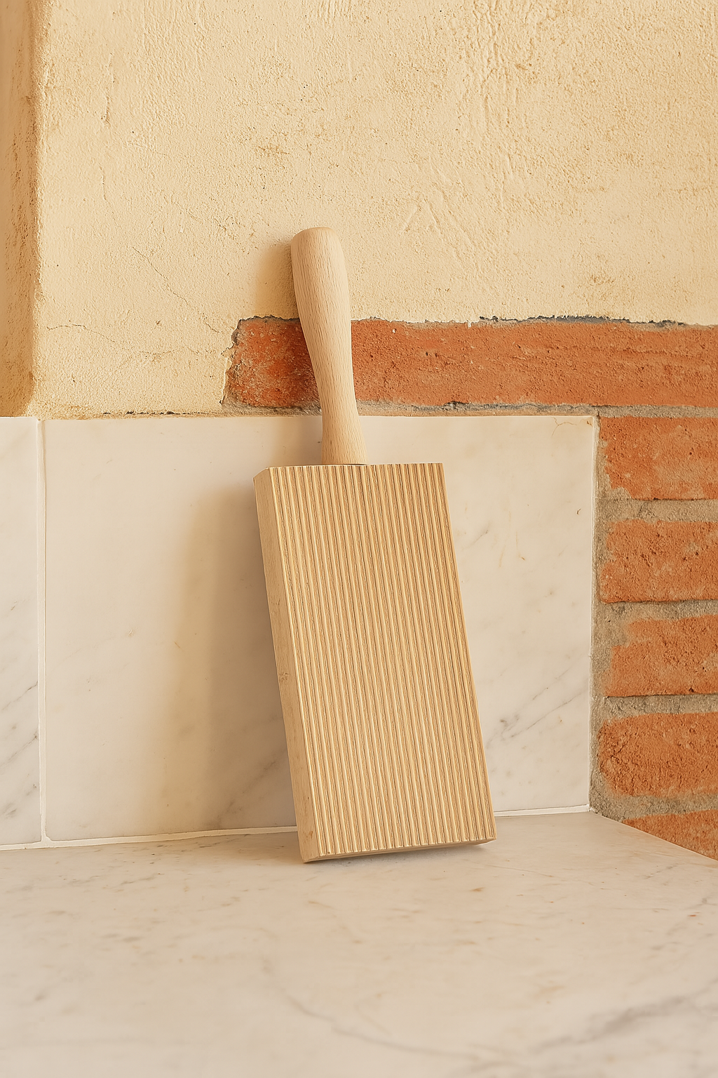 Ručno izrađena u srcu Italije od prirodnog drva, ova rebrasta daska stvorena je za savršene njoke, baš onakve kakve bi poslužila nona na kamenoj terasi s pogledom na maslinik.