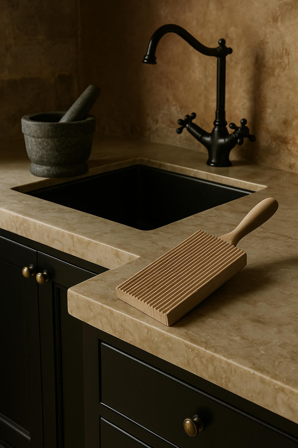 Nježna tekstura ostavlja idealne utore na tijestu, a elegantna, jednostavna forma oplemenit će svaku kuhinju – bilo da njoke radiš često, ili samo voliš kad ti kuhinjski komad priča priču.