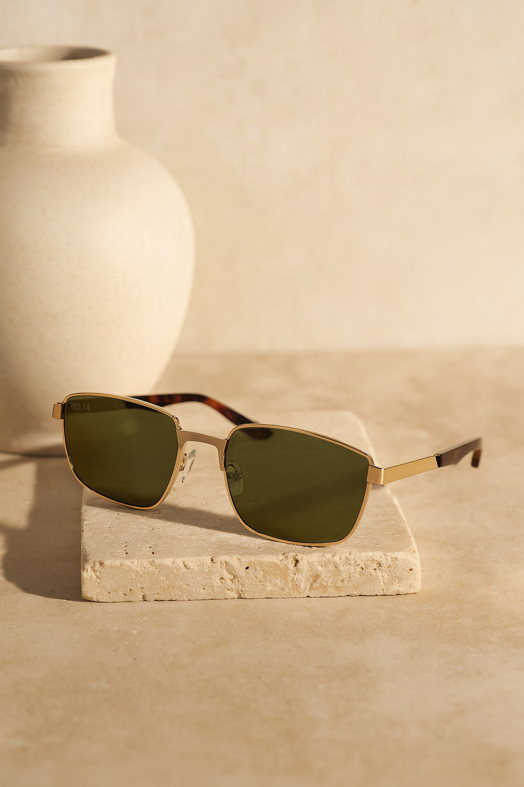 Zlatni metalni okvir s pravokutnim linijama odiše karakterom, dok fotoosjetljiva i polarizirana stakla u zelenoj nijansi automatski prilagođavaju svjetlu, eliminiraju odsjaje i čuvaju oči od naprezanja.