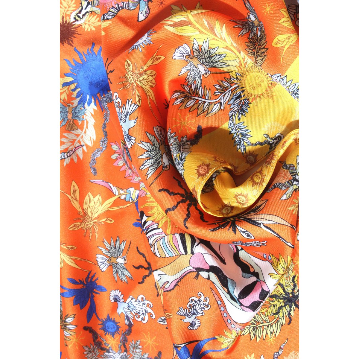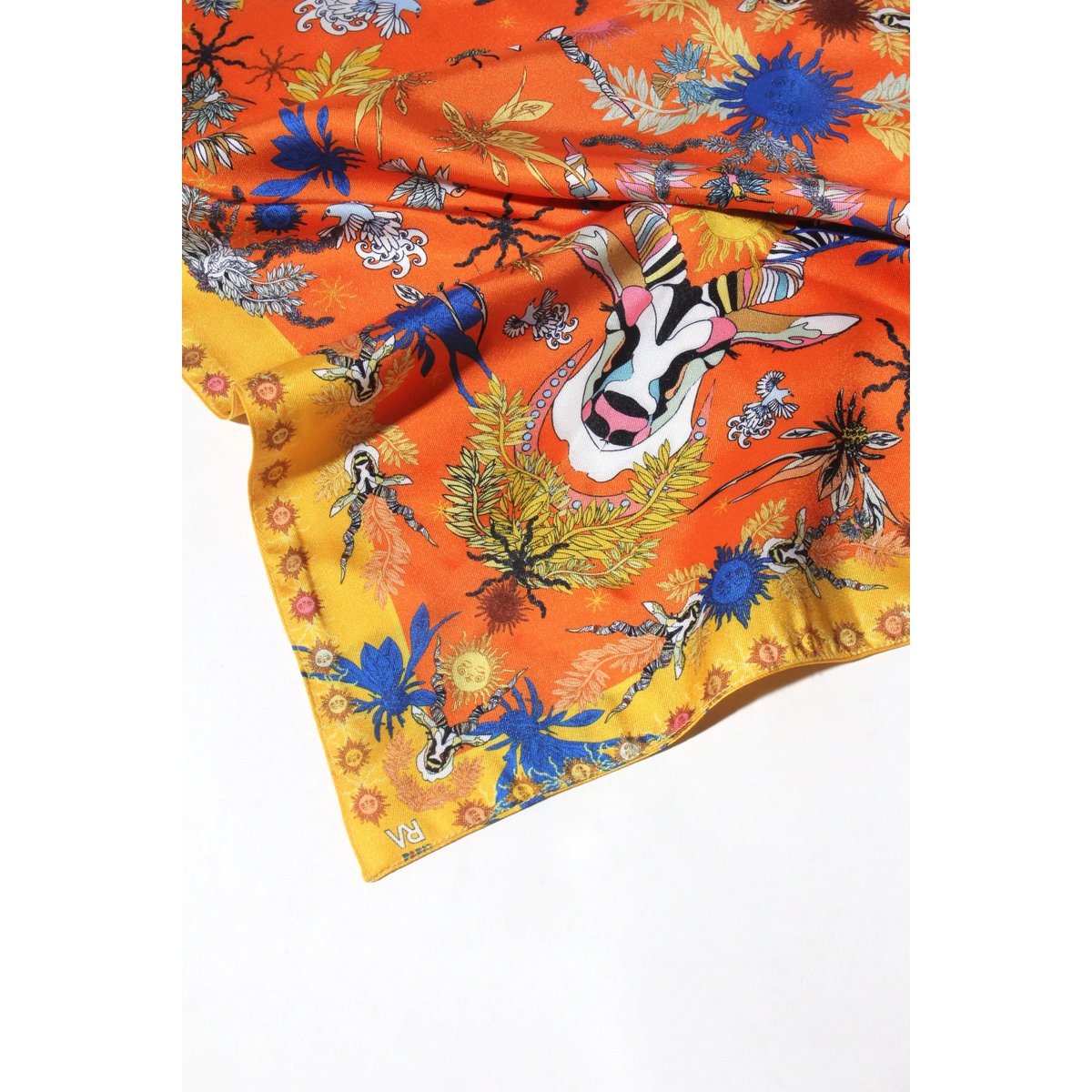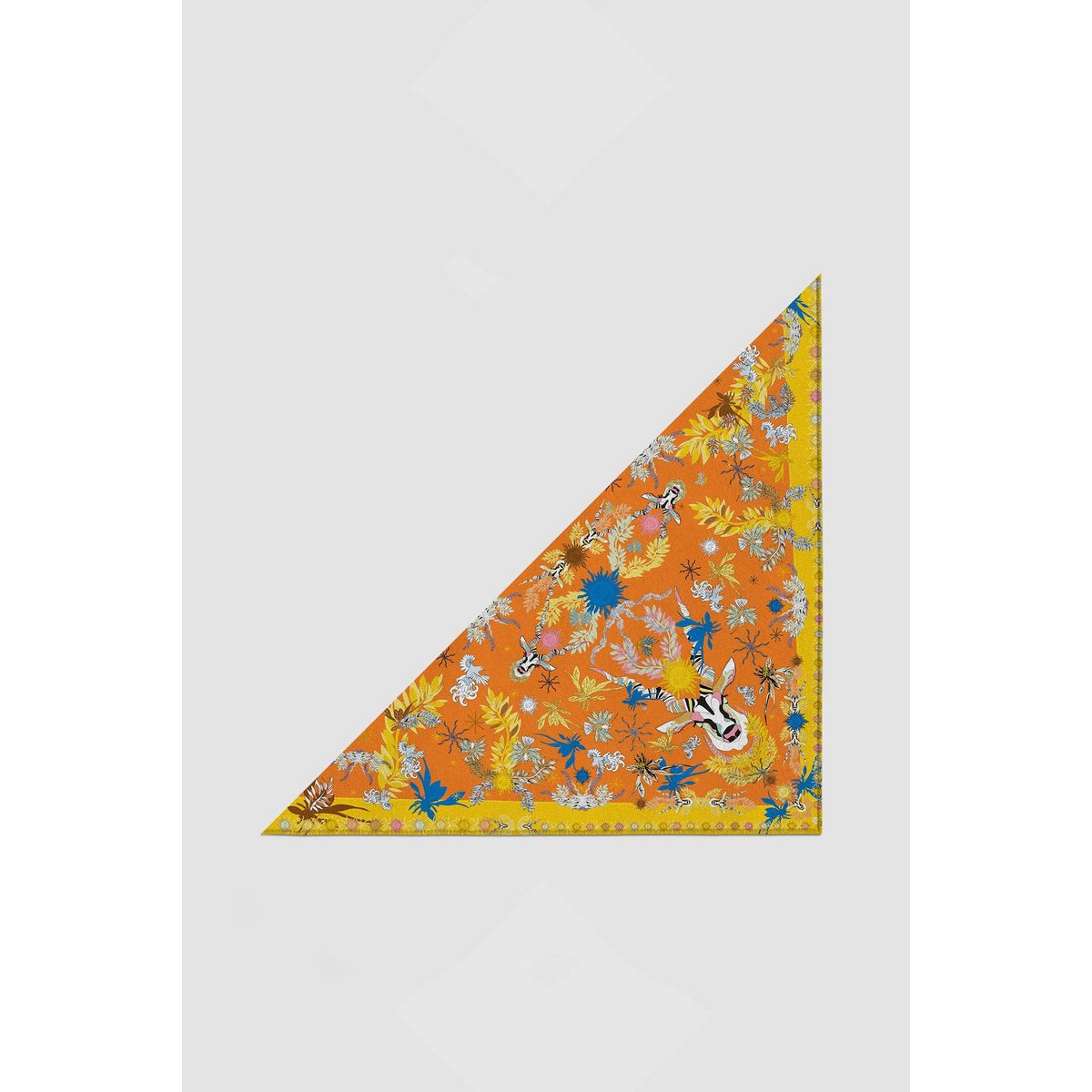 Nježna poput povjetarca, a snažna kao totem. “Earth Shaman” marama od recikliranog twilla nije samo dodatak – to je manifest duhovnosti, prirode i stila. Inspirirana zemljanim nijansama i simbolikom totema, ova trokutasta marama donosi toplinu boje naranče i otisak koji djeluje kao amulet.